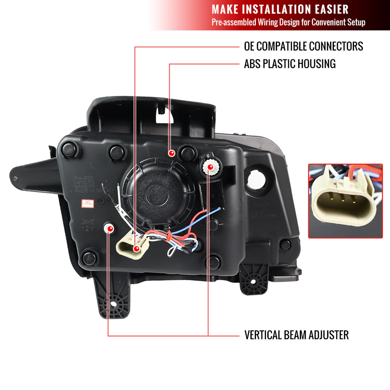 Built to OEM specifications by an ISO-certified manufacturer, these headlights ensure quality, durability, and seamless fitment. Pre-installed H11 high/low beam bulbs provide bright and efficient illumination, enhancing night-time visibility.