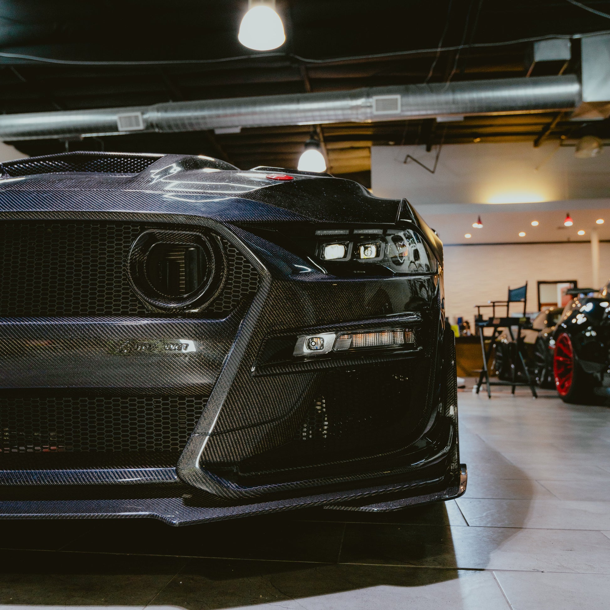 The new Auto Addict USA lightweight Ford Mustang GT500/Mach1 Halo Double-Sided Full Carbon Fiber Front Bumper Conversion (2018-2023 models) offers a top-tier upgrade for Mustang enthusiasts aiming for a blend of performance and aesthetics. This front bumper conversion is constructed entirely from carbon fiber, significantly reducing weight compared to standard bumpers. The dual-sided carbon fiber not only enhances strength but also provides a refined finish on both sides.